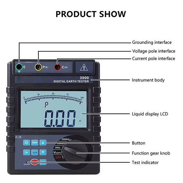 GoodProx ground resistance meter GP-RM-3K is a heavy-duty industrial-grade digital measurement tool engineered for reliable, high-precision testing of all types of electrical grounding systems in harsh on-site conditions. As a professional GP-RM-3K digital ground earth resistance meter, it integrates advanced high-sensitivity microprocessor sensing technology with a rugged, dust and impact-resistant build to deliver fast, error-free readings—supporting one-person operation with no complex setup or calibration required.