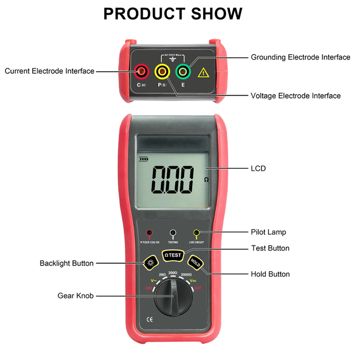 2. With the function of judgement the auxiliary grounding stake, the tester can display the resistance value of the auxiliary grounding stake in testing, which can avoid the error caused by the excessive earth resistance of the auxiliary ground stake.
