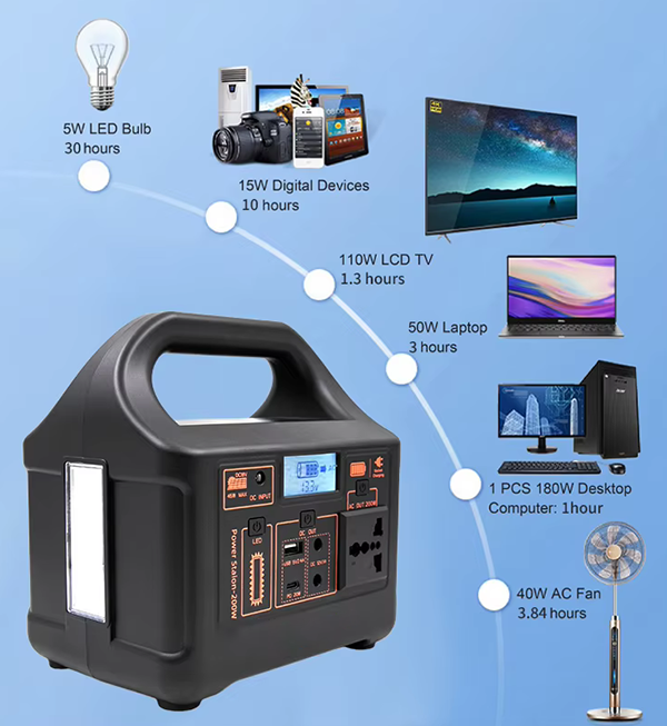 External and solar charging ports DC5521* (built-in solar intelligent controller) |