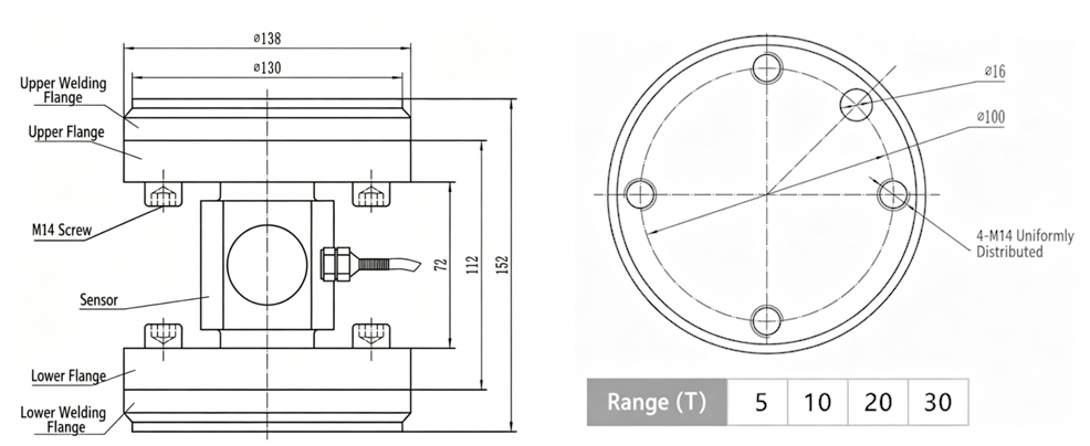 GoodProx load cell GP-LC-Z013 is a high-stability column type load cell with flange mounting structure. Made of quality alloy steel, this flange load cell supports large ranges 5T–30T and delivers stable signal, strong anti-interference and reliable performance. It is widely used in dry powder mortar tanks, hopper weighing, auto testing and industrial force measurement systems.