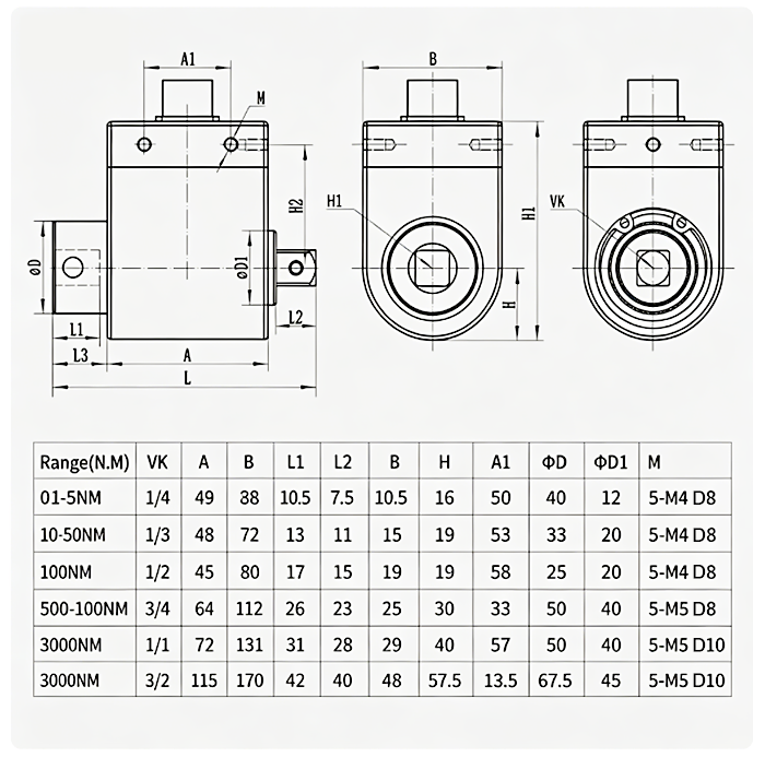 0-50Nm: 1Nm, 2Nm, 5Nm, 10Nm, 20Nm, 30Nm, 50Nm. |
