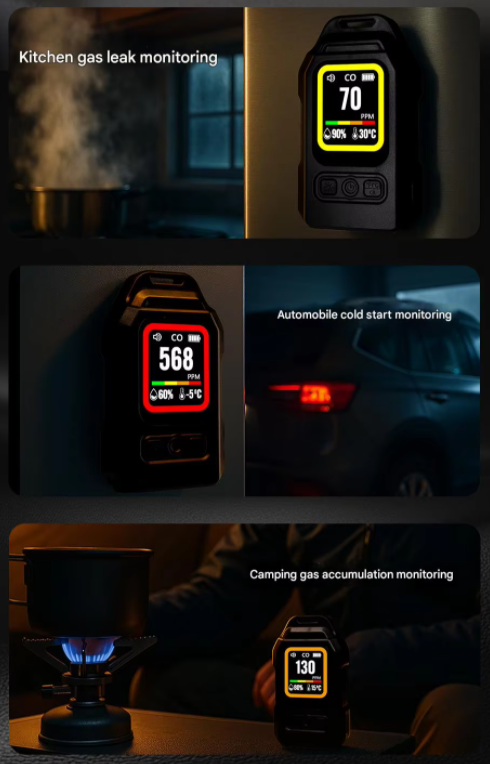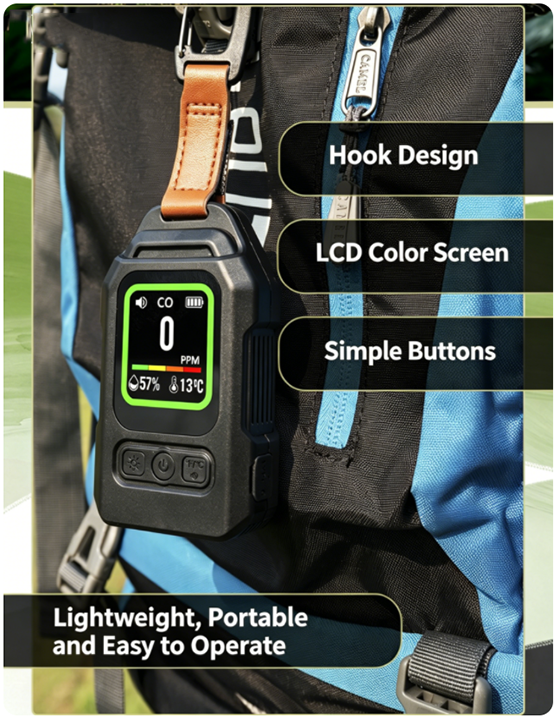 - Portable carbon monoxide detector provides real‑time monitoring to keep you safe from CO poisoning.