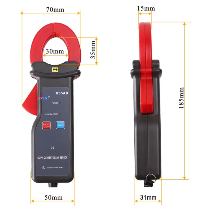 - Compact Jaw: 30x35mm opening fits large conductors.