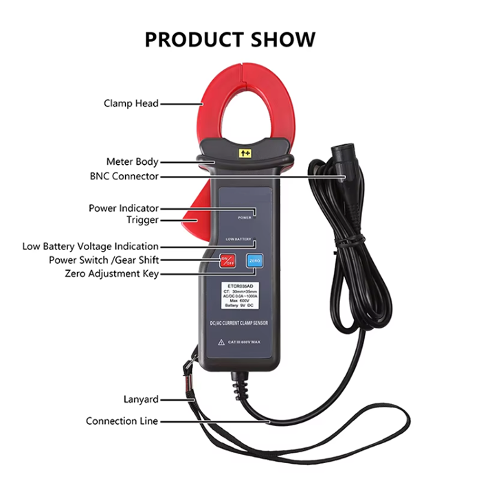 - Wide Range: Covers 0.0A to 1000A AC/DC.