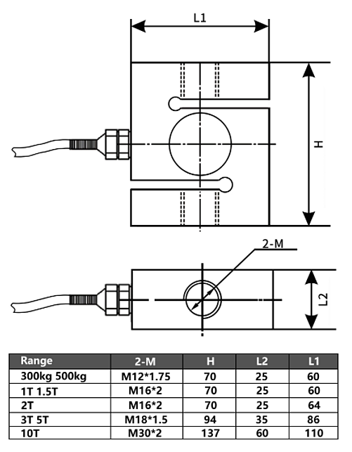 S-Type Tension Compression Load Cell | 300kg to 10T