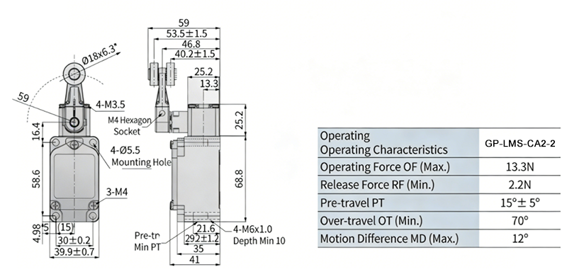GoodProx GP-LMS-CA2-2 safety double-circuit limit switch is a professional industrial safety control component. It adopts a double-circuit design to enhance safety and reliability, with IP66 waterproof and dustproof performance, suitable for harsh working environments. As a vertical safety limit switch, it features stable action, long service life and strong compatibility, widely used in mechanical safety protection, stroke control and safety interlock systems.